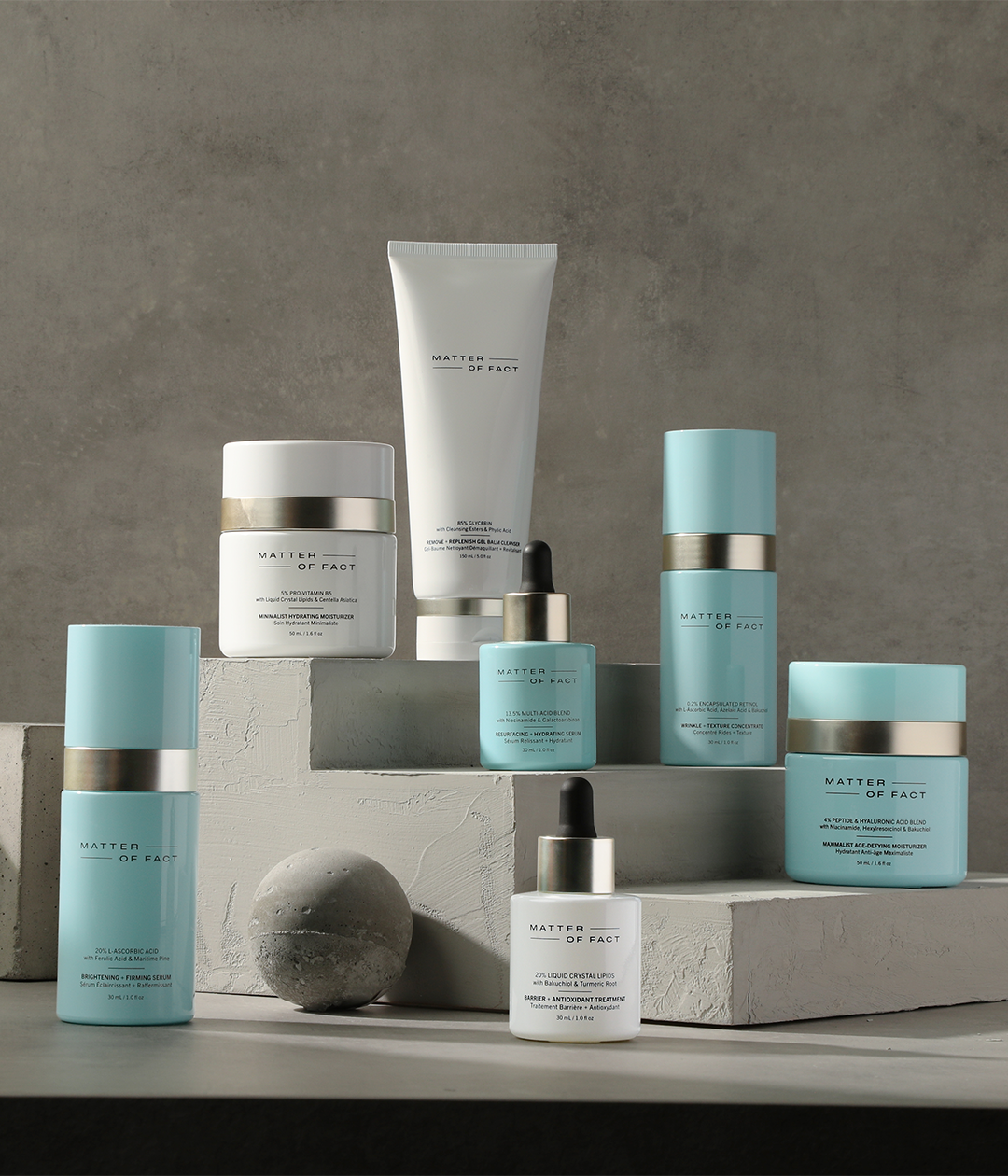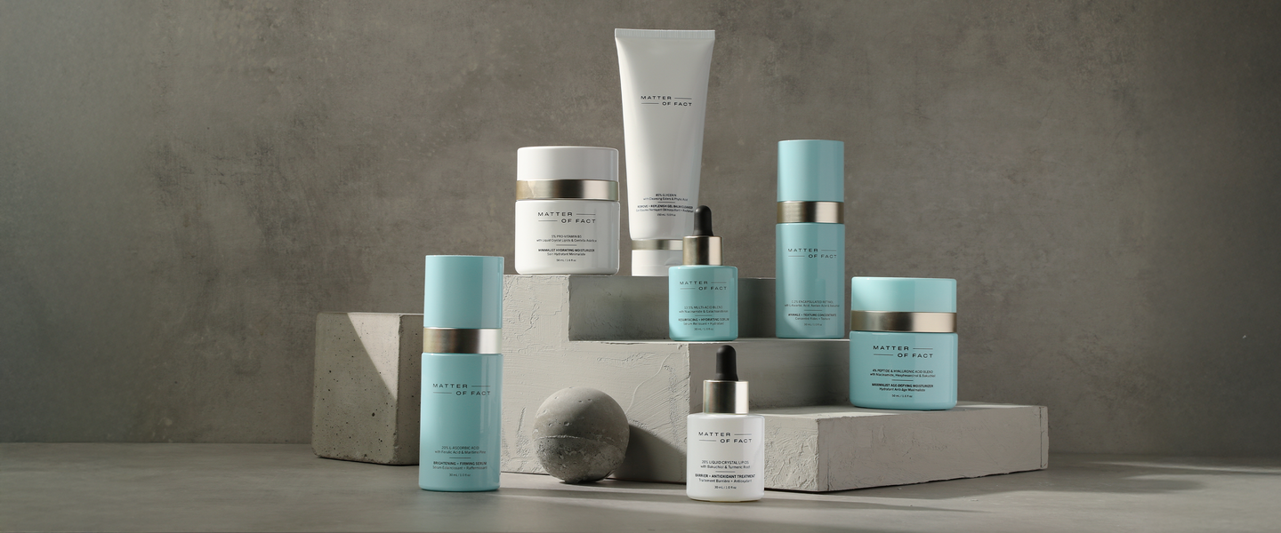 MATTER OF FACT är ett resultat av de insikter jag samlat på mig längs vägen. Med dem hoppas vi kunna stötta dig i din hudvårdsresa. Hos oss får du alltid noggrant framtagna produkter baserade på forskning och tydlig, ärlig information.